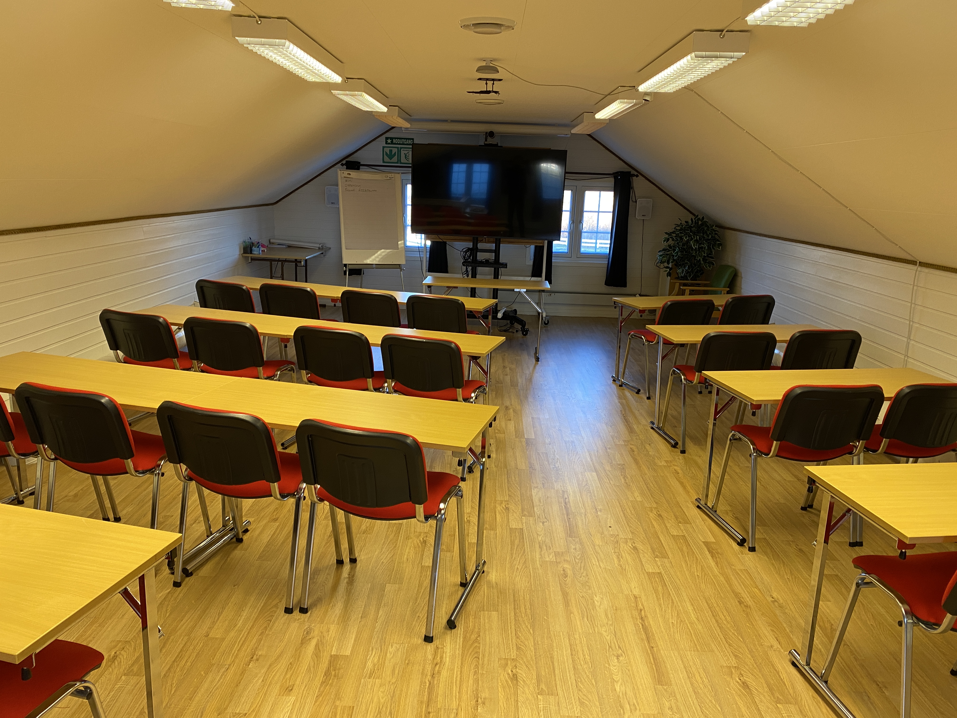 Vårt største møterom, ”Kursloftet”, ligger ved siden av hovedbygget, i et restaurert, gammelt eldhus. Vi gjør alt vi kan for å skreddersy et opplegg som passer akkurat for din bedrift og kan tilby god, hjemmelaget mat, aktiviteter og lokal underholdning.