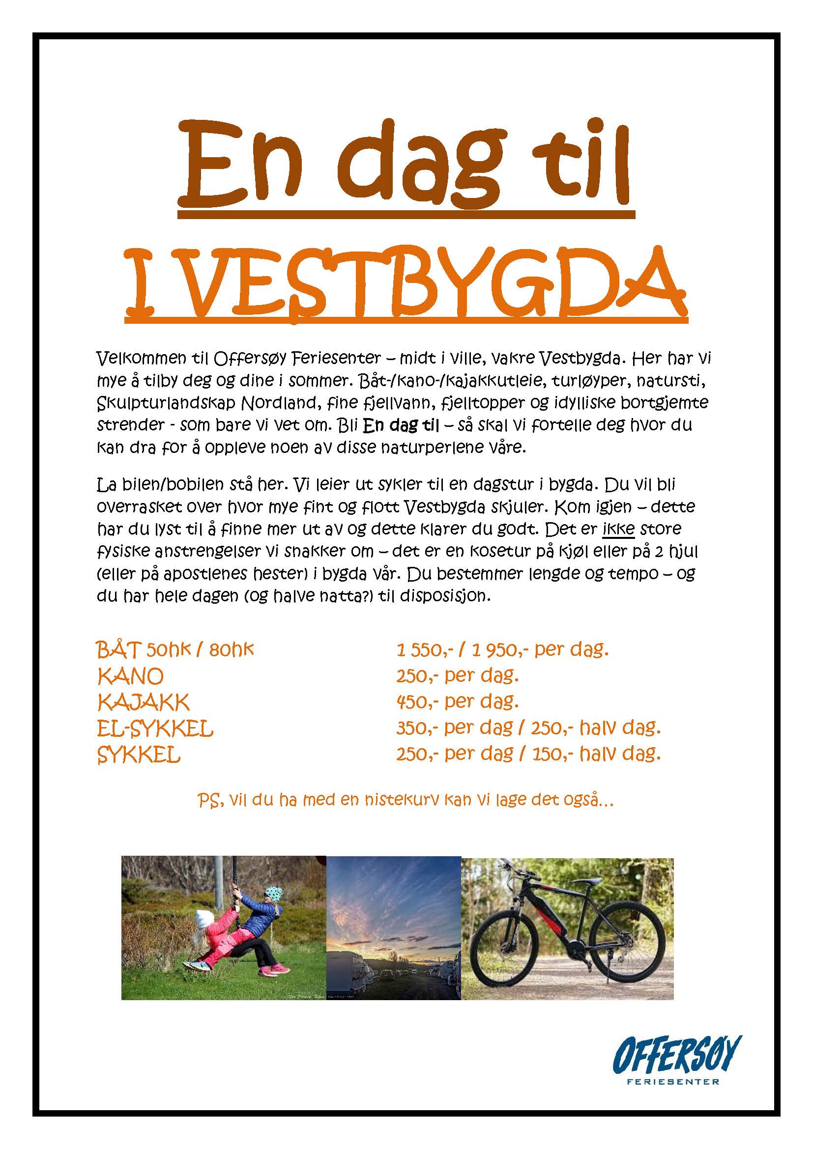 Lei båt, fiskeutstyr, redningsvest, etc. Ring og forhåndsbestill. Priser fra kr 1 550 pr dag. Vi har også kano-, kajakk-, og el-sykkelutleie og egen guide kan ordnes.